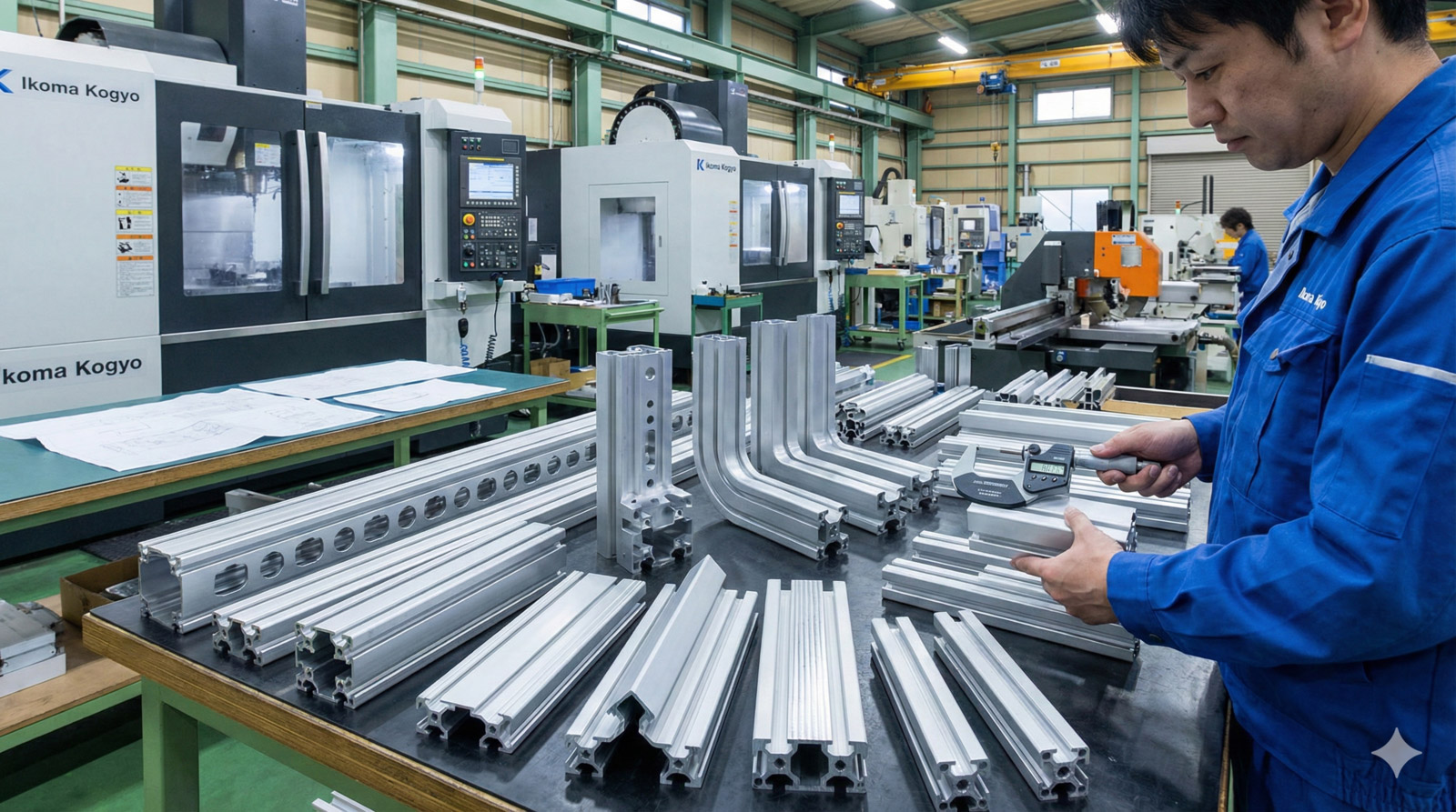 本記事では、アルミ型材の加工の基礎から、得意・不得意な形状や公差、トラブルの原因、外注先との付き合い方までを技術的背景とともに整理します。あわせて、イコマ工業が保有する設備でどこまで対応できるかも具体的に紹介し、「どのレベルまで相談できるのか」をイメージしていただける内容としています。
