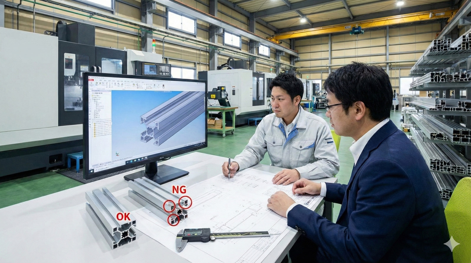 | 組立時に寸法が合わない | 押出材公差・反りを未考慮 | 基準面の明示、公差指示、事前相談 |