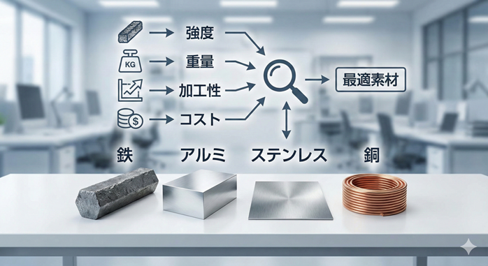 金属材料の選び方入門|鉄・アルミ・ステンレス・銅の特徴と加工性を比較